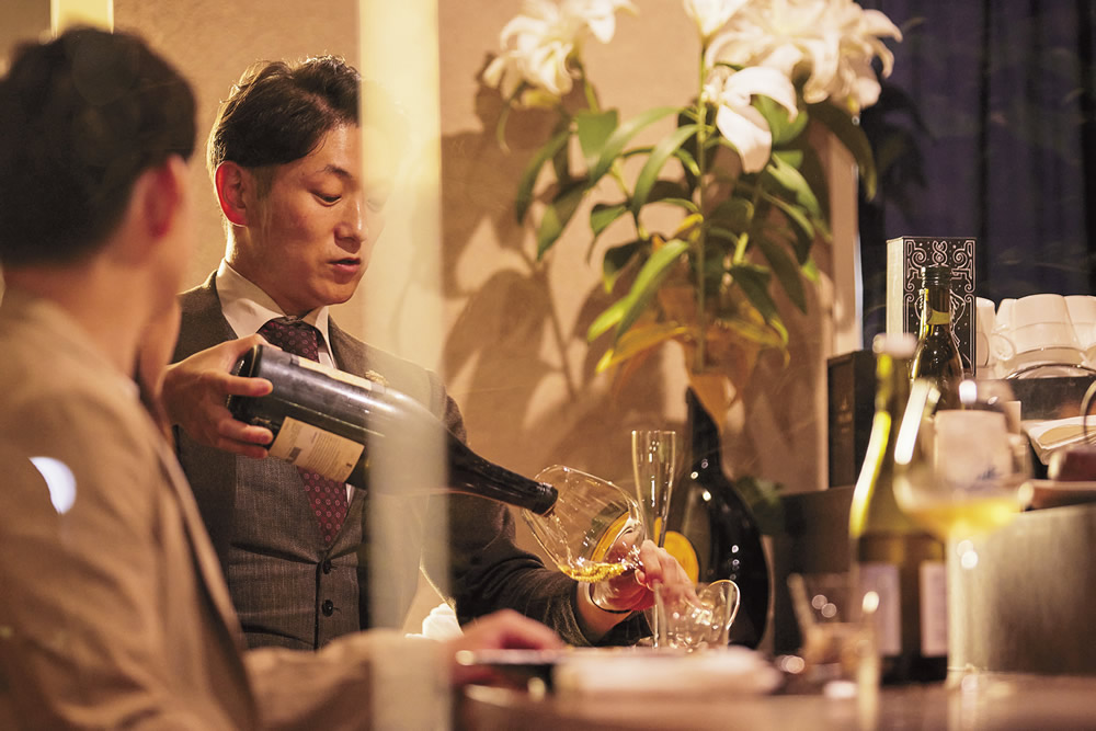 八重桜を望む目黒川沿い 日本の四季を感じるお任せコースフレンチレストラン 予約制ながらアットホーム。ソムリエエクセレンスが織りなすワイン、和酒も使ったダブルペアリングが秀逸