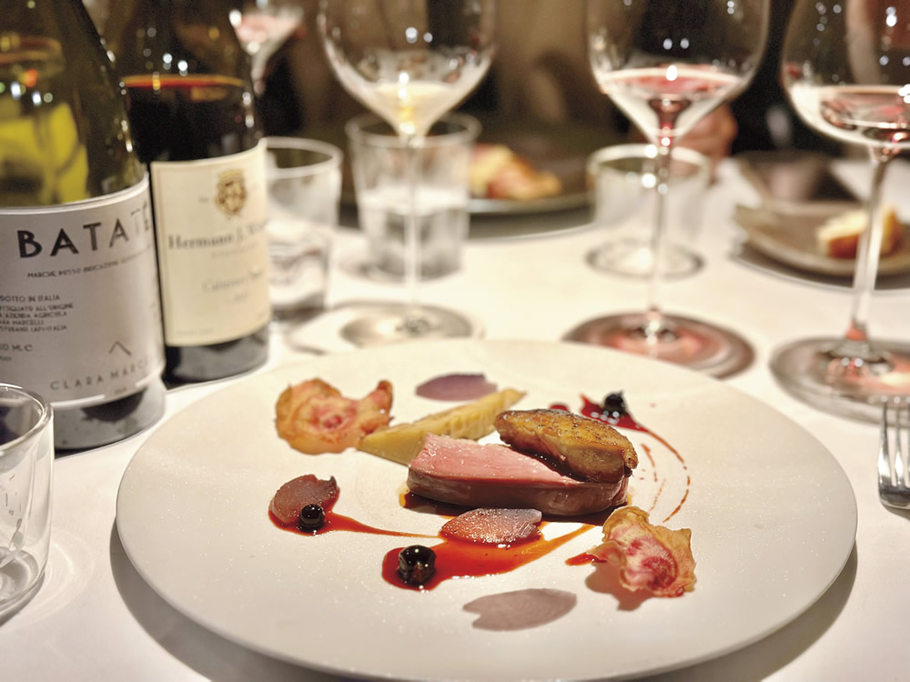 八重桜を望む目黒川沿い 日本の四季を感じるお任せコースフレンチレストラン 予約制ながらアットホーム。ソムリエエクセレンスが織りなすワイン、和酒も使ったダブルペアリングが秀逸